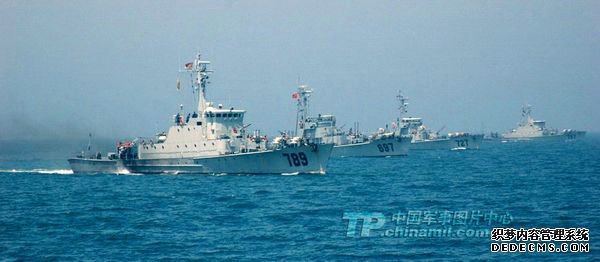 资料图:南海舰队反潜编队进行机动反潜演练。