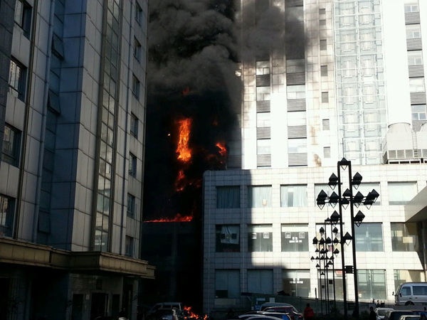 天津南开区一高层建筑突发大火(1)(2)