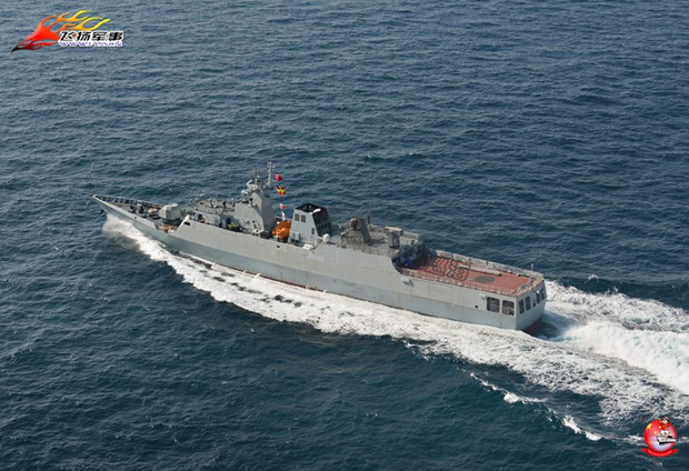 该艘护卫舰在海上进行测试时的场景