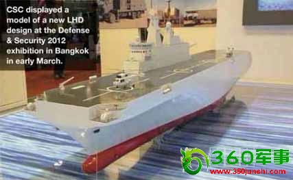 资料图:2012泰国曼谷防务展期间,中国公司展出的新型直升机船坞登陆舰模型。